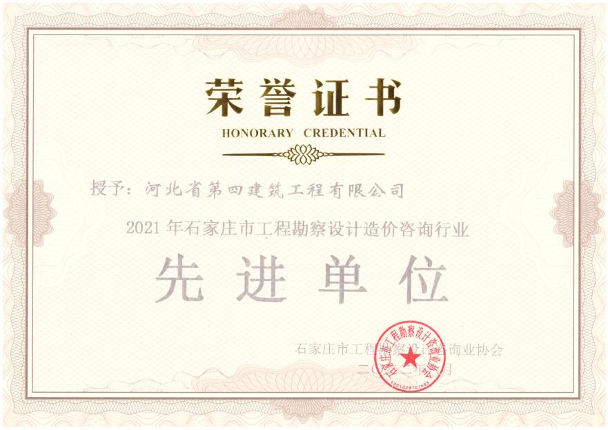 石家庄市工程勘察设计造价咨询行业先进单位