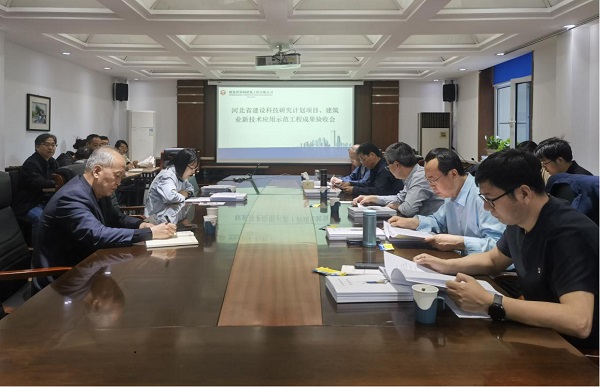 4月24日至25日,河北省住房和城乡建设厅组织专家组在公司三楼会议室举行成果验收会。公司完成的8项河北省建设科技研究计划项目、7项新技术应用示范工程全部通过验收,并达到国内先进及以上水平。省住建厅建筑节能与科技处处长赵庆建主持验收会议,公司总工程师高任清带领技术中心、各课题组成员参会。